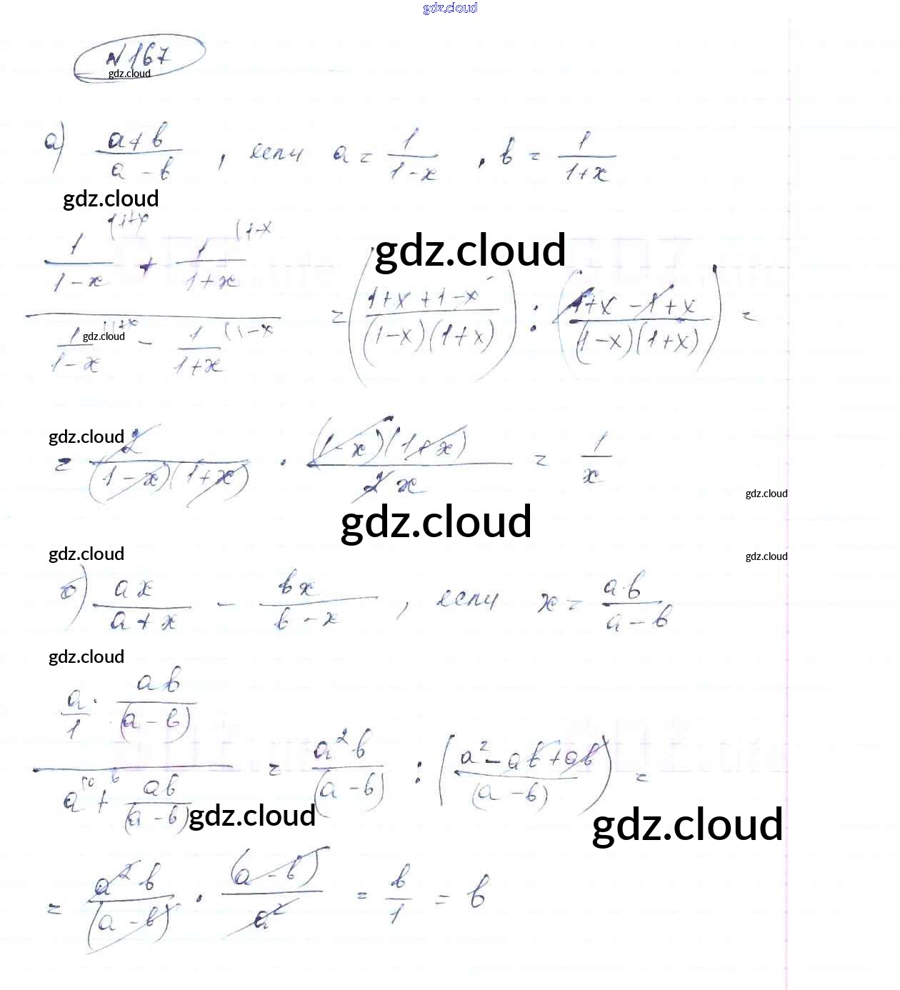 Ответ на задание 167 Учебник Алгебра за 8 (восьмой) класс Макарычев, Миндюк, Нешков, Суворова 2016
