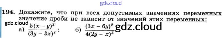 Ответ на задание 194 Учебник Алгебра за 8 (восьмой) класс Макарычев, Миндюк, Нешков, Суворова 2016