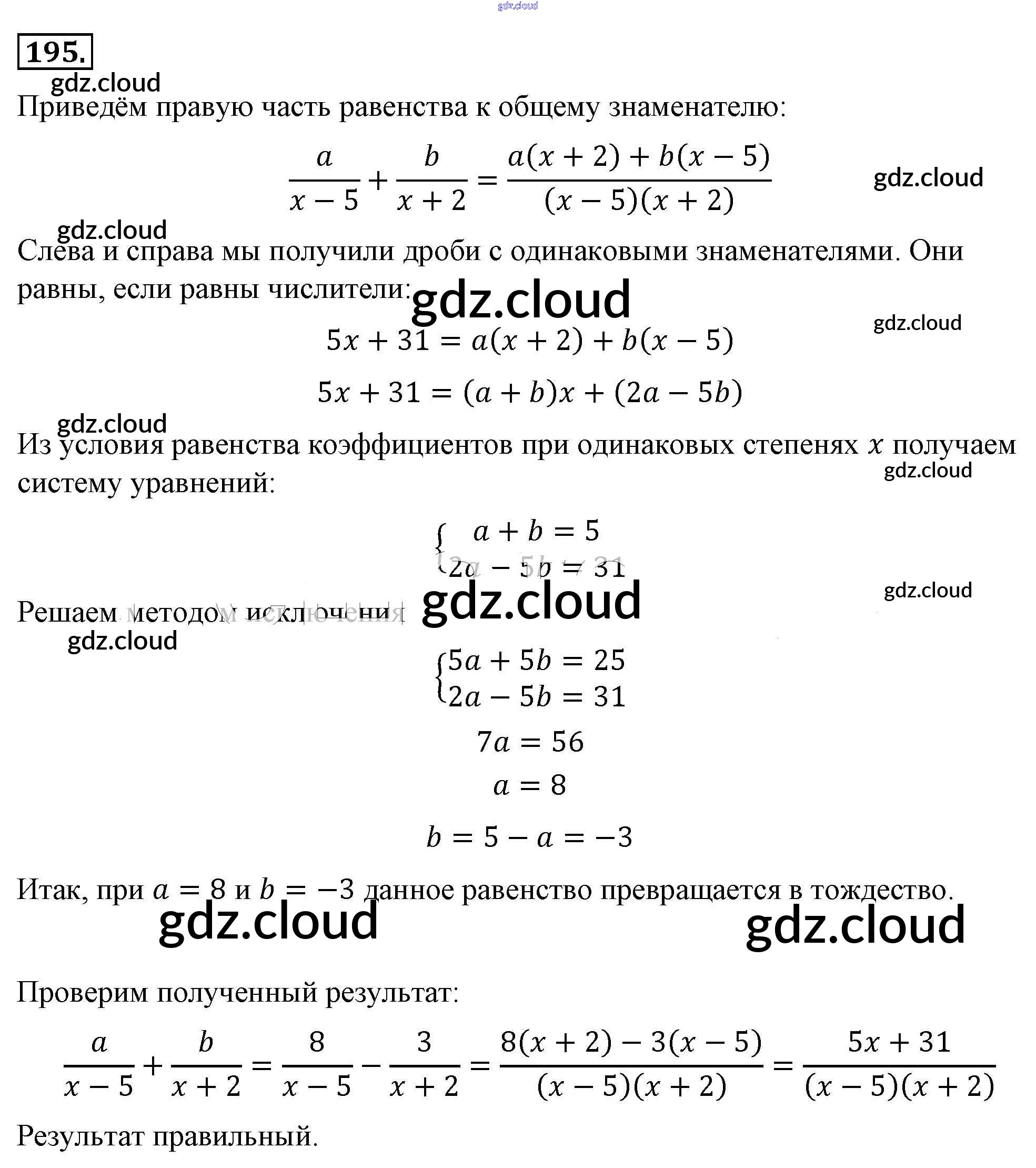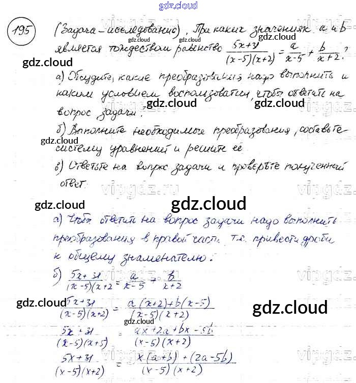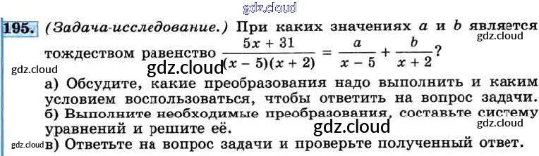 Ответ на задание 195 Учебник Алгебра за 8 (восьмой) класс Макарычев, Миндюк, Нешков, Суворова 2016