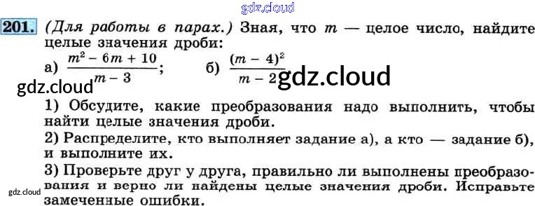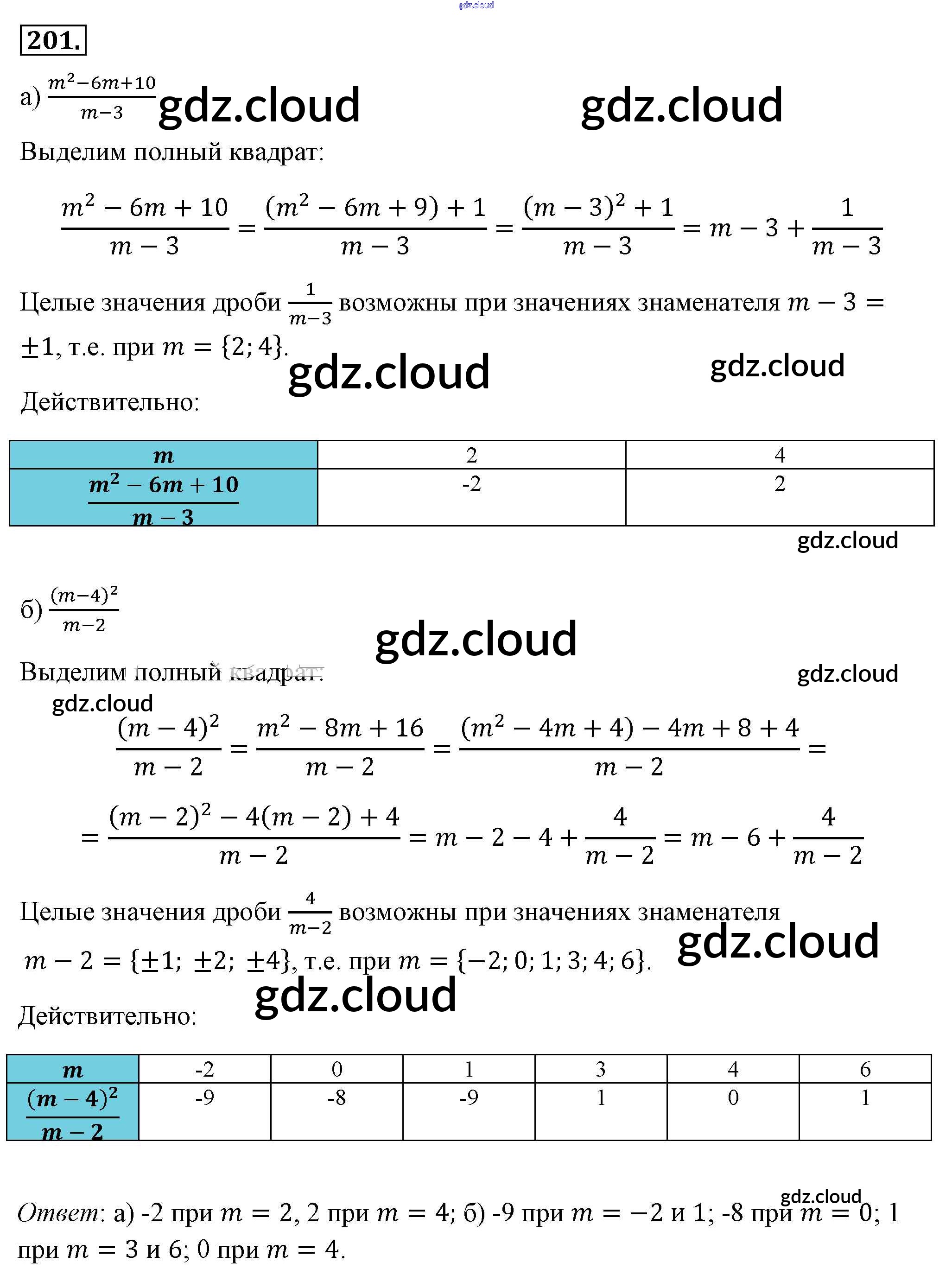 Ответ на задание 201 Учебник Алгебра за 8 (восьмой) класс Макарычев, Миндюк, Нешков, Суворова 2016