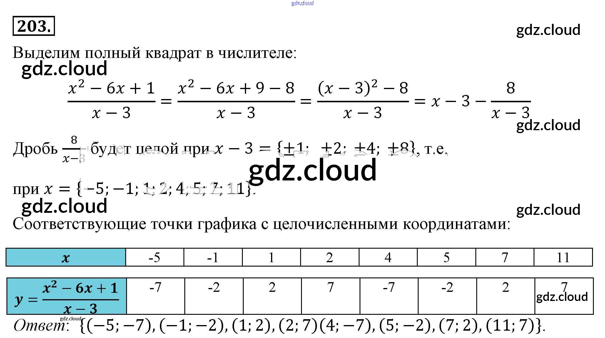 Ответ на задание 203 Учебник Алгебра за 8 (восьмой) класс Макарычев, Миндюк, Нешков, Суворова 2016