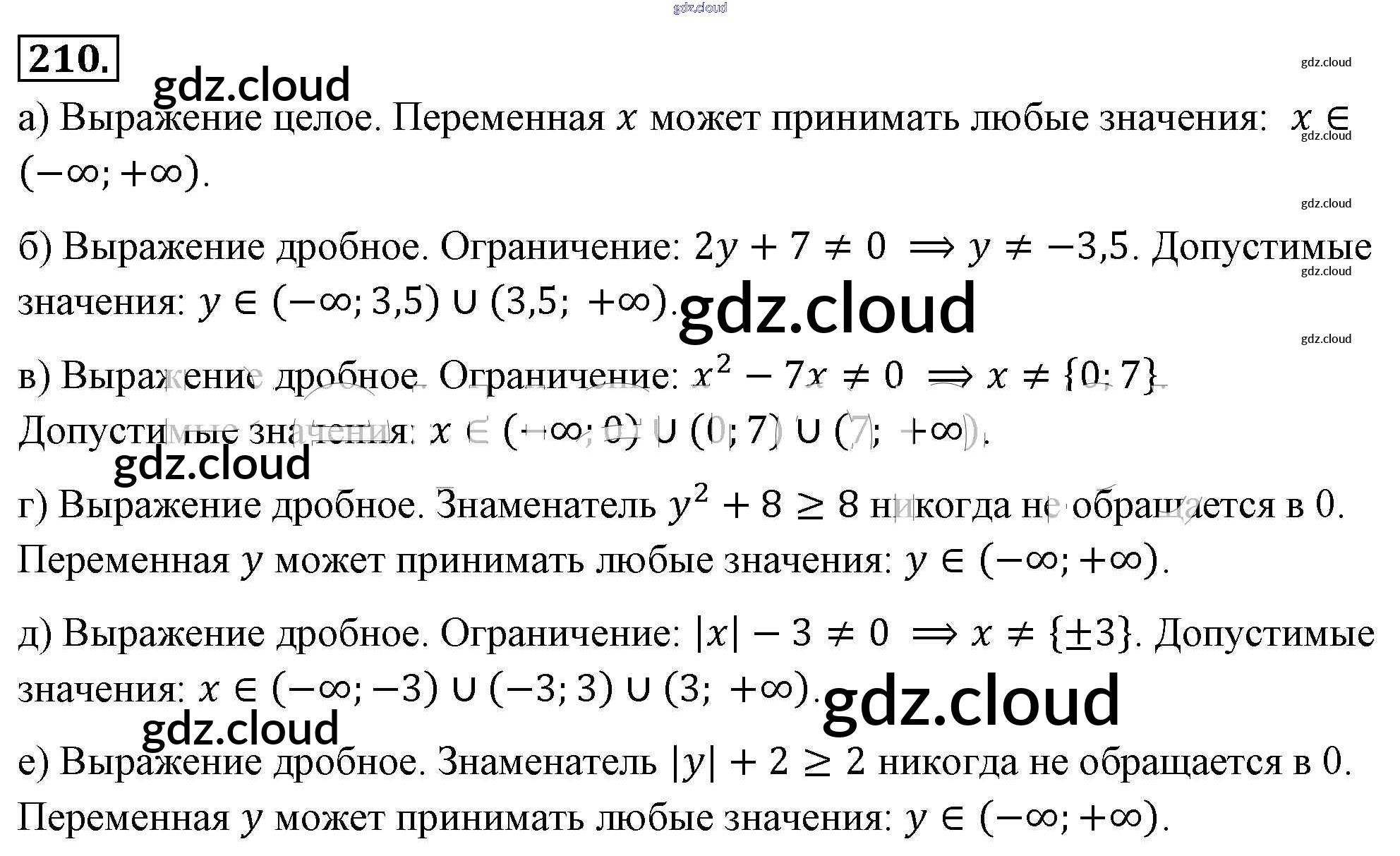 Ответ на задание 210 Учебник Алгебра за 8 (восьмой) класс Макарычев, Миндюк, Нешков, Суворова 2016