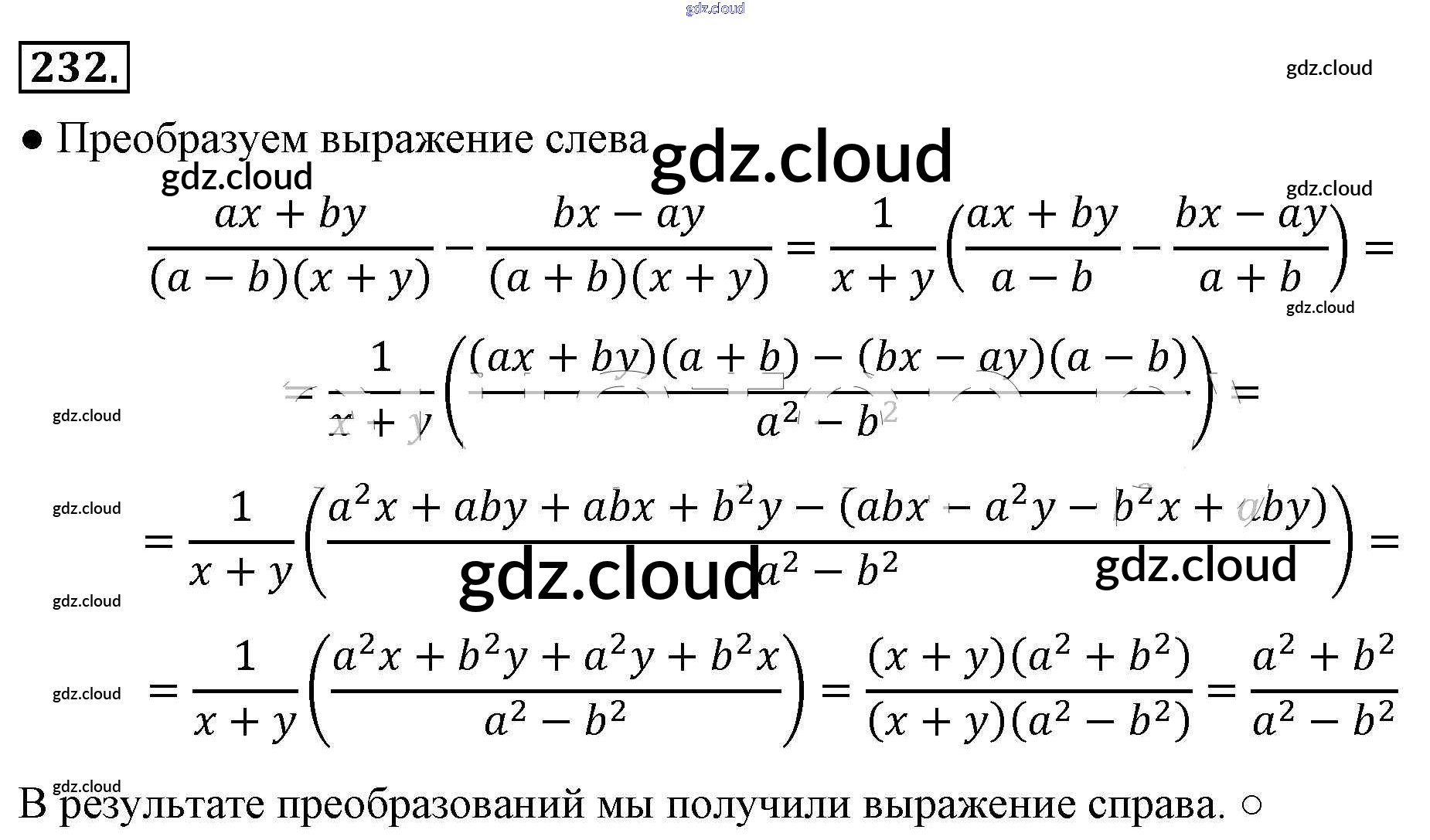 Ответ на задание 232 Учебник Алгебра за 8 (восьмой) класс Макарычев, Миндюк, Нешков, Суворова 2016