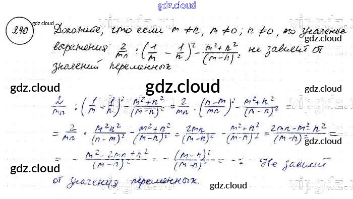 Ответ на задание 240 Учебник Алгебра за 8 (восьмой) класс Макарычев, Миндюк, Нешков, Суворова 2016