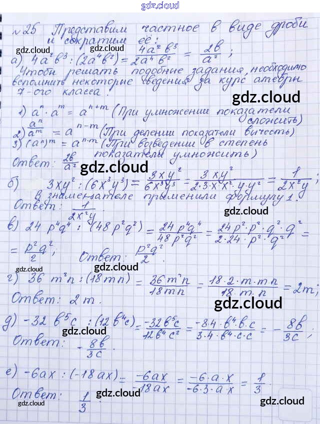 Ответ на задание 25 Учебник Алгебра за 8 (восьмой) класс Макарычев, Миндюк, Нешков, Суворова 2016