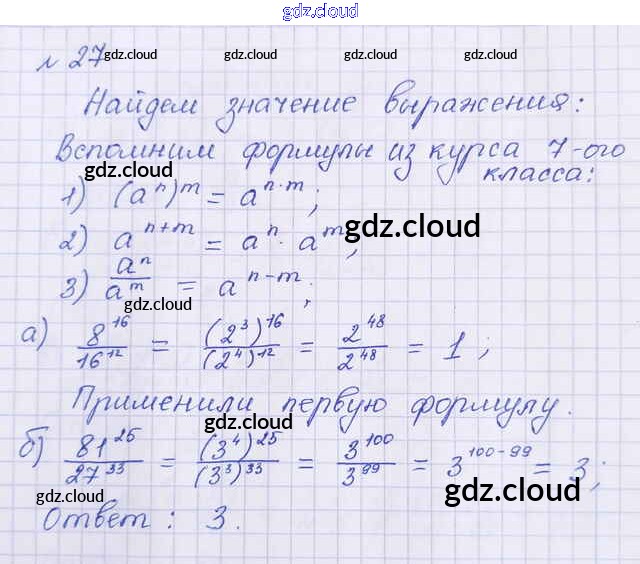 Ответ на задание 27 Учебник Алгебра за 8 (восьмой) класс Макарычев, Миндюк, Нешков, Суворова 2016