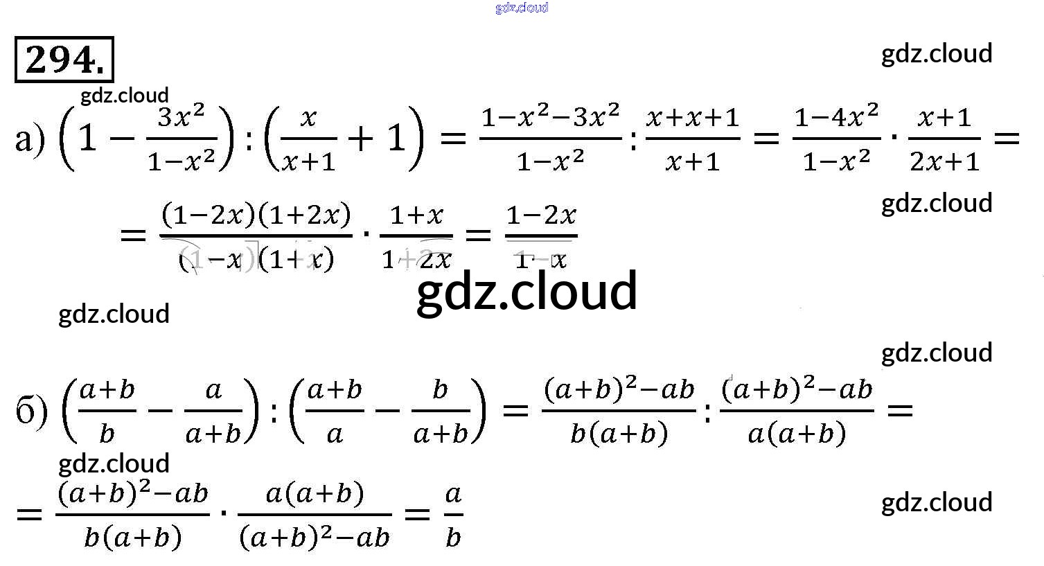 Ответ на задание 294 Учебник Алгебра за 8 (восьмой) класс Макарычев, Миндюк, Нешков, Суворова 2016