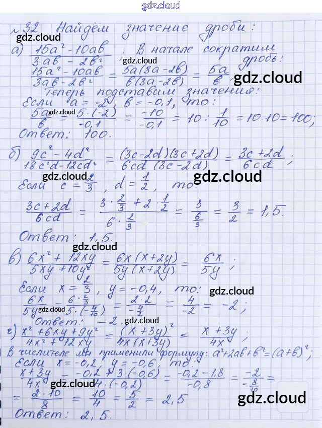 Ответ на задание 32 Учебник Алгебра за 8 (восьмой) класс Макарычев, Миндюк, Нешков, Суворова 2016