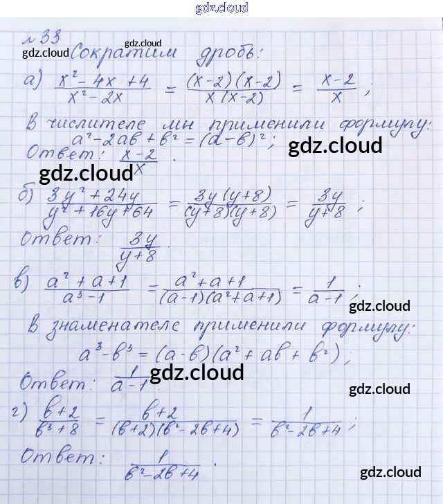 Ответ на задание 33 Учебник Алгебра за 8 (восьмой) класс Макарычев, Миндюк, Нешков, Суворова 2016
