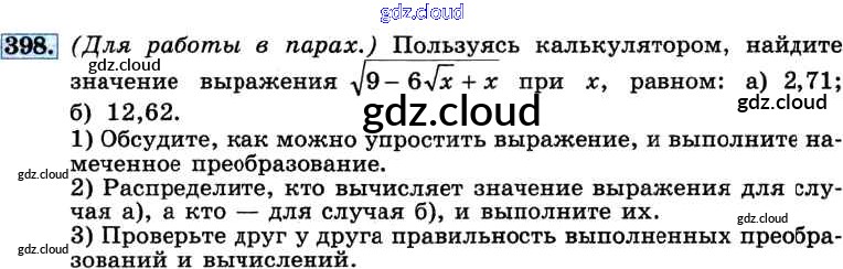 Ответ на задание 398 Учебник Алгебра за 8 (восьмой) класс Макарычев, Миндюк, Нешков, Суворова 2016