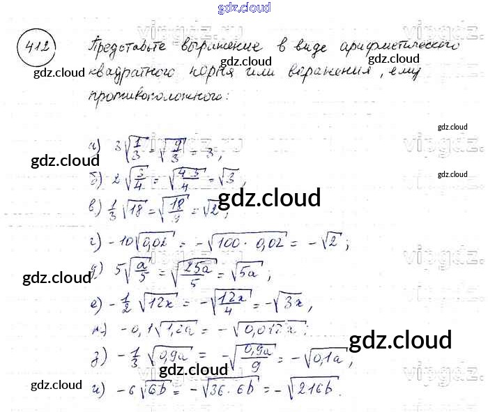 Ответ на задание 412 Учебник Алгебра за 8 (восьмой) класс Макарычев, Миндюк, Нешков, Суворова 2016
