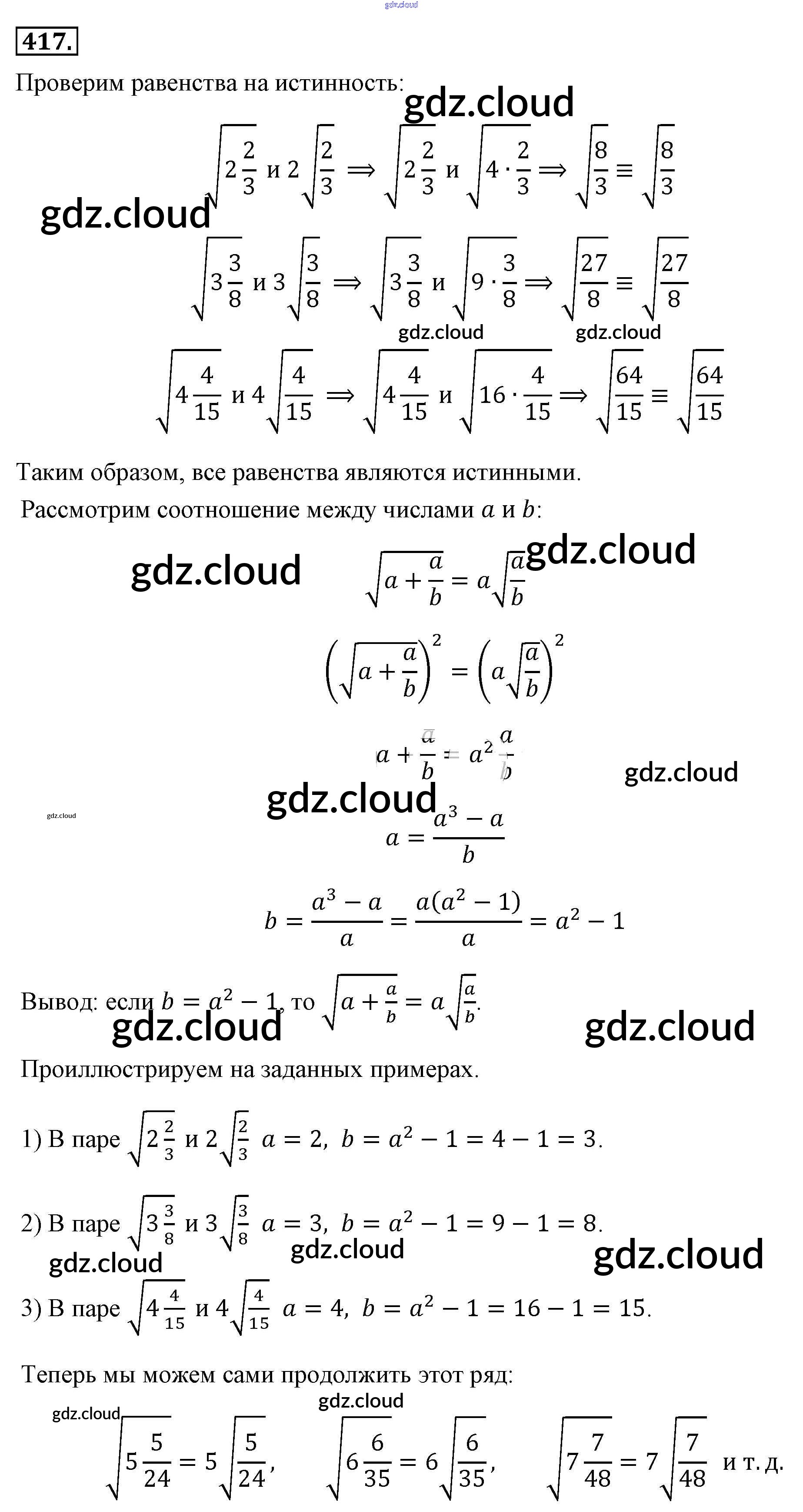 Ответ на задание 417 Учебник Алгебра за 8 (восьмой) класс Макарычев, Миндюк, Нешков, Суворова 2016
