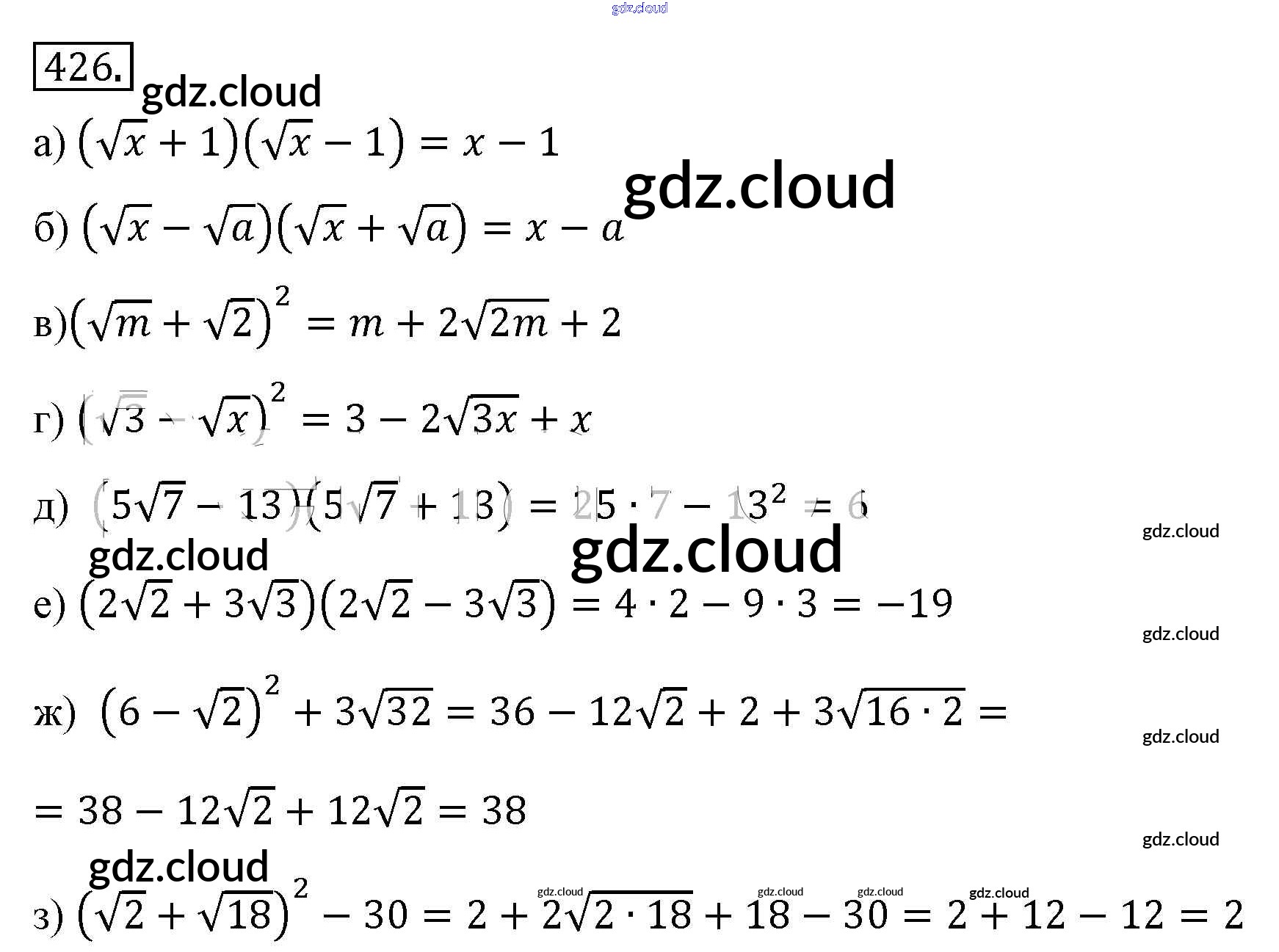 Ответ на задание 426 Учебник Алгебра за 8 (восьмой) класс Макарычев, Миндюк, Нешков, Суворова 2016