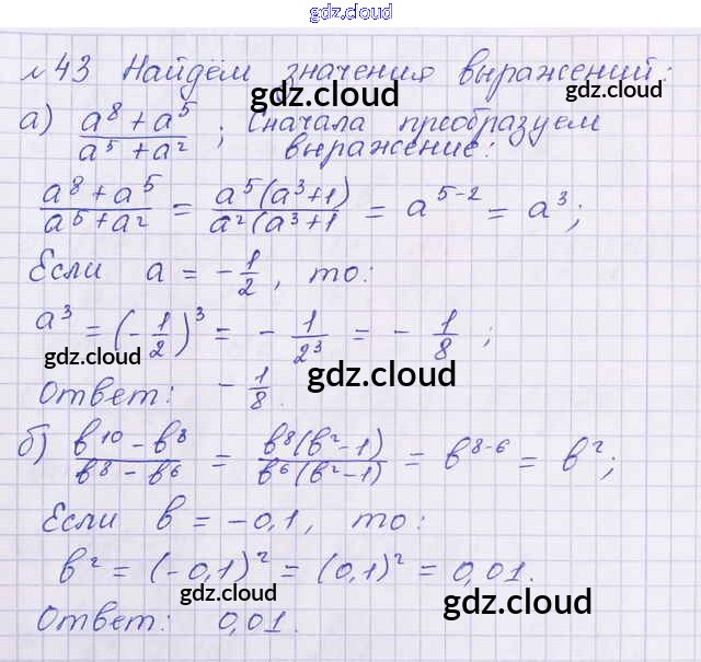 Ответ на задание 43 Учебник Алгебра за 8 (восьмой) класс Макарычев, Миндюк, Нешков, Суворова 2016