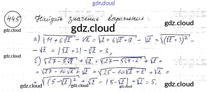 Ответ на задание 445 Учебник Алгебра за 8 (восьмой) класс Макарычев, Миндюк, Нешков, Суворова 2016