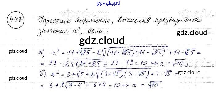 Ответ на задание 447 Учебник Алгебра за 8 (восьмой) класс Макарычев, Миндюк, Нешков, Суворова 2016