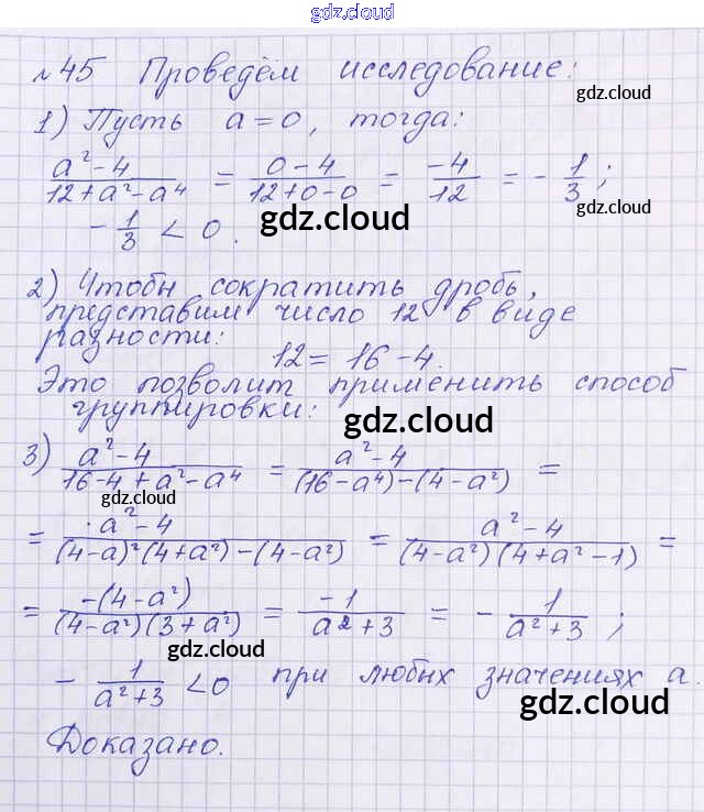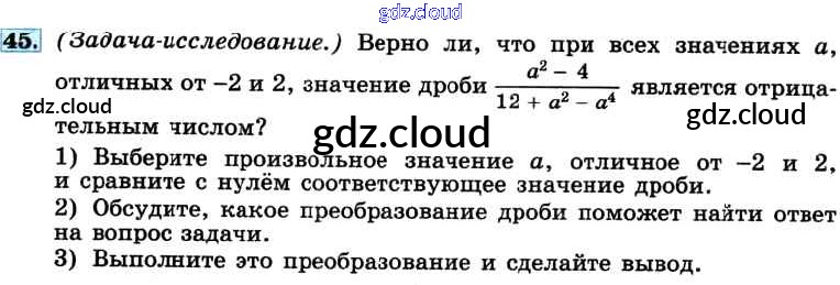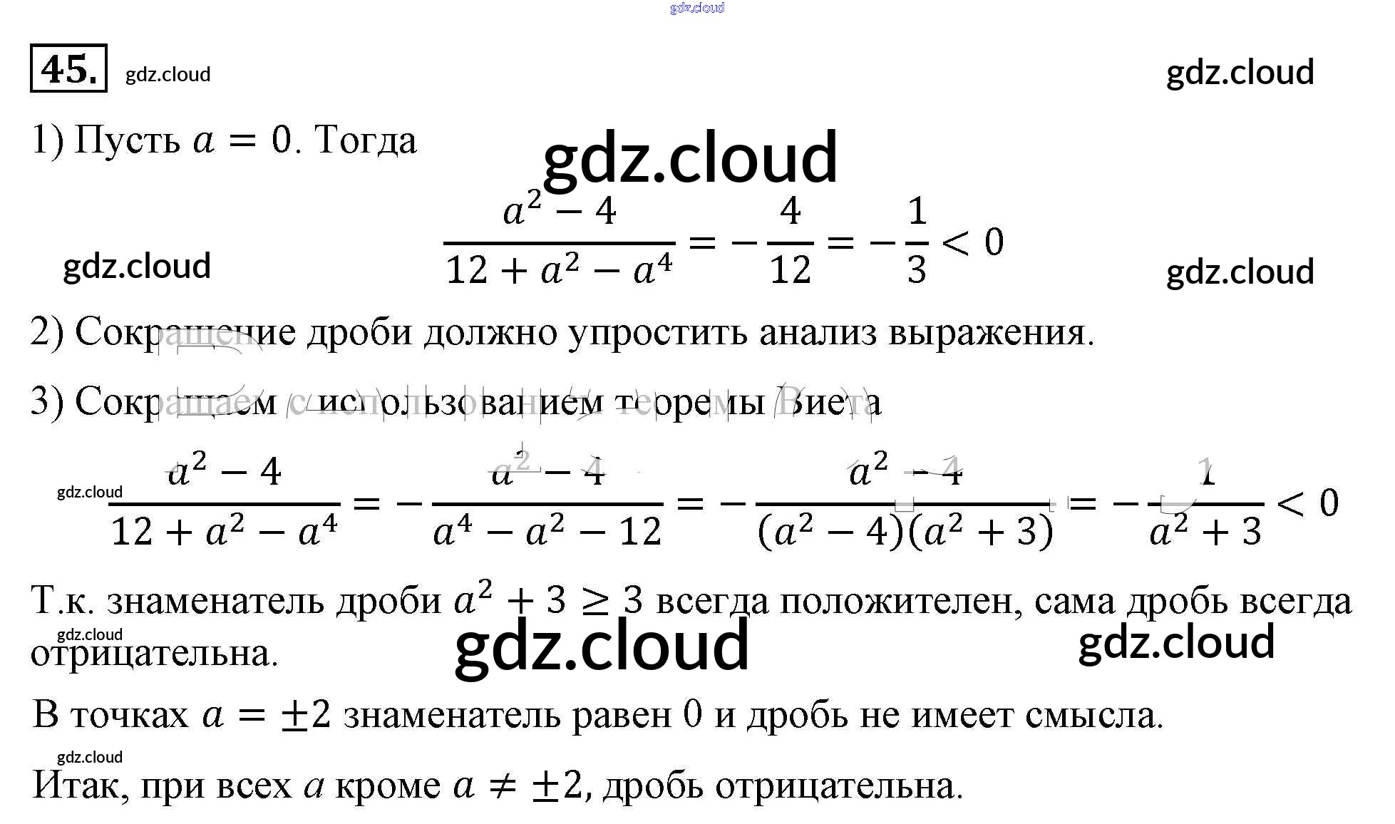 Ответ на задание 45 Учебник Алгебра за 8 (восьмой) класс Макарычев, Миндюк, Нешков, Суворова 2016
