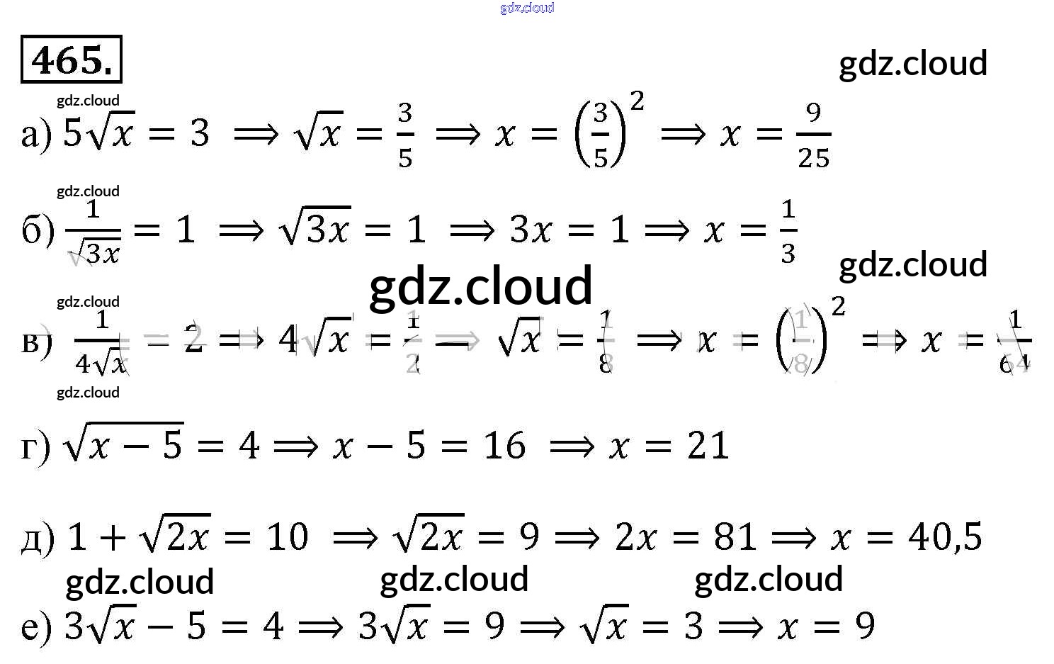 Ответ на задание 465 Учебник Алгебра за 8 (восьмой) класс Макарычев, Миндюк, Нешков, Суворова 2016