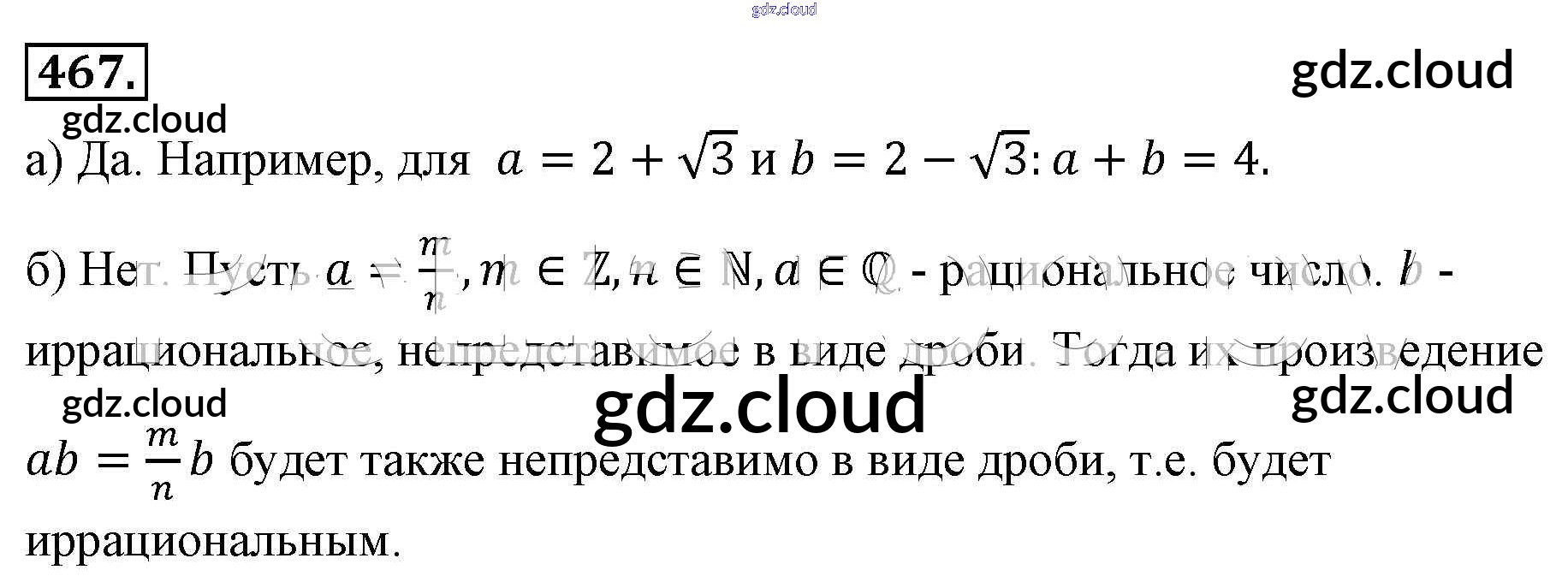 Ответ на задание 467 Учебник Алгебра за 8 (восьмой) класс Макарычев, Миндюк, Нешков, Суворова 2016
