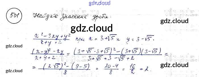 Ответ на задание 501 Учебник Алгебра за 8 (восьмой) класс Макарычев, Миндюк, Нешков, Суворова 2016