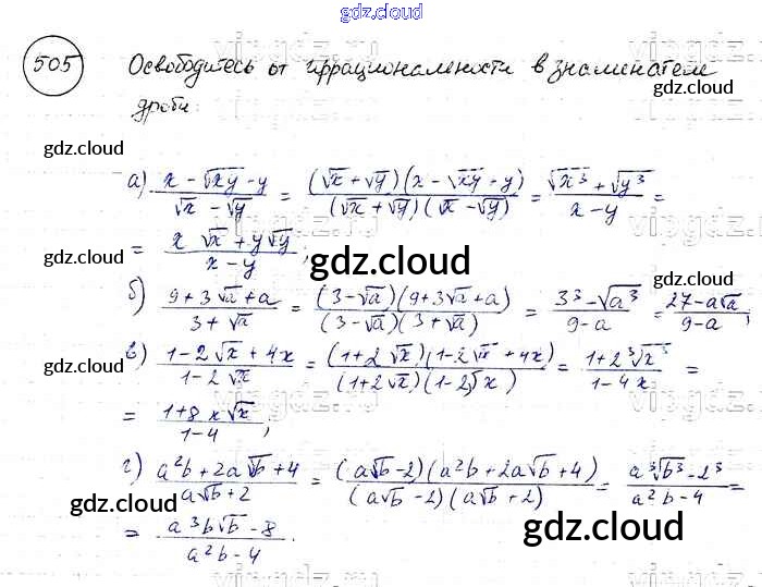 Ответ на задание 505 Учебник Алгебра за 8 (восьмой) класс Макарычев, Миндюк, Нешков, Суворова 2016