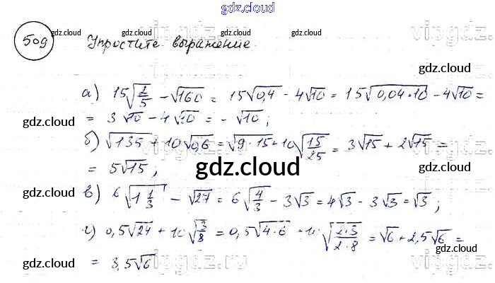 Ответ на задание 509 Учебник Алгебра за 8 (восьмой) класс Макарычев, Миндюк, Нешков, Суворова 2016