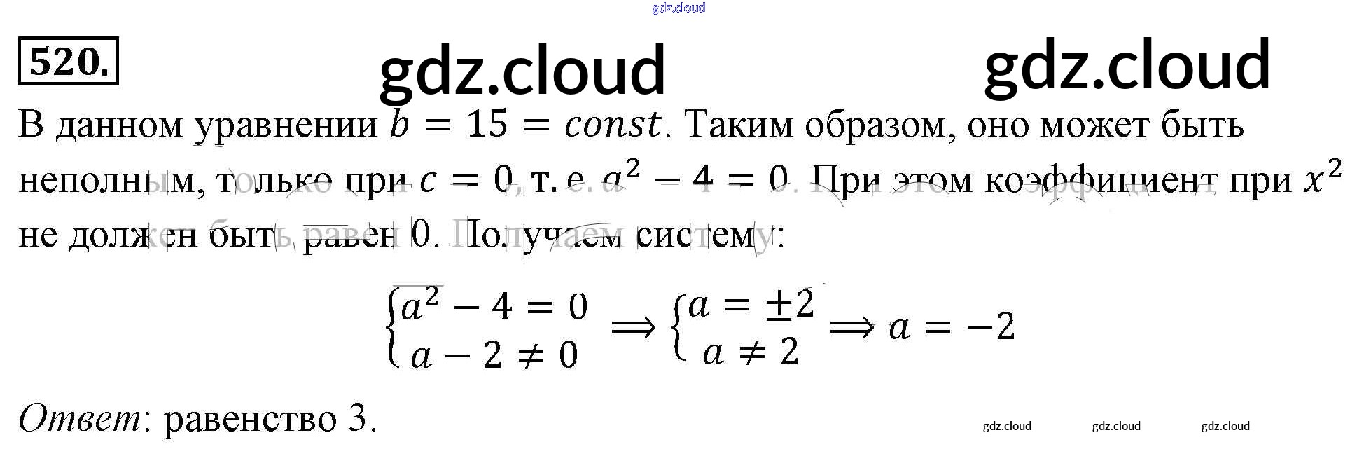Ответ на задание 520 Учебник Алгебра за 8 (восьмой) класс Макарычев, Миндюк, Нешков, Суворова 2016