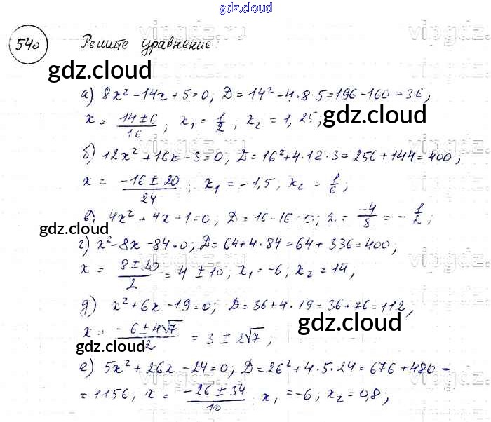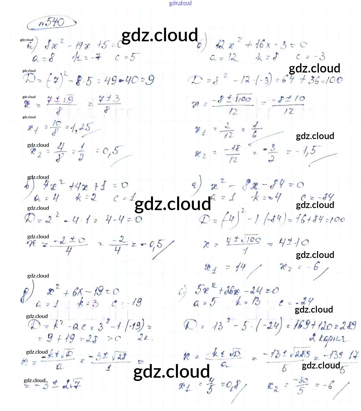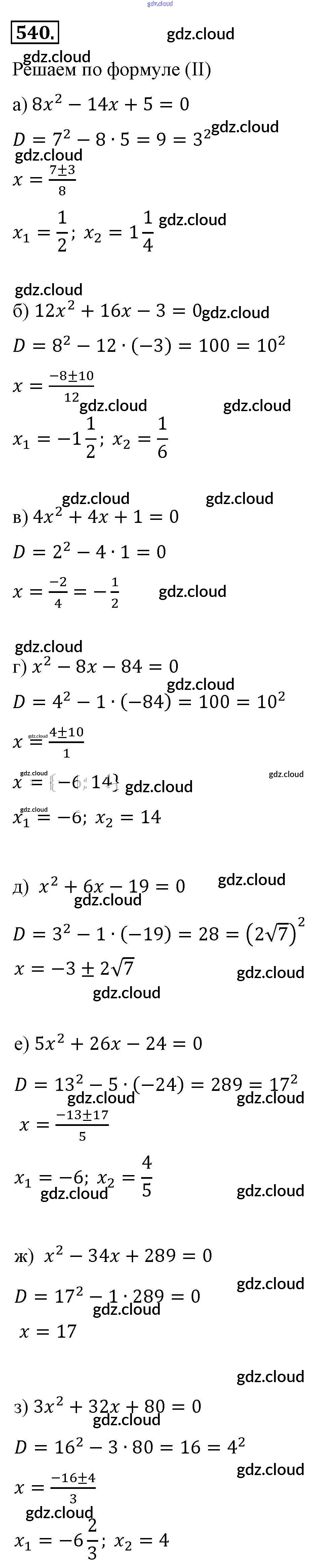 Ответ на задание 540 Учебник Алгебра за 8 (восьмой) класс Макарычев, Миндюк, Нешков, Суворова 2016