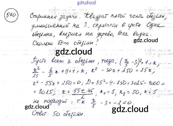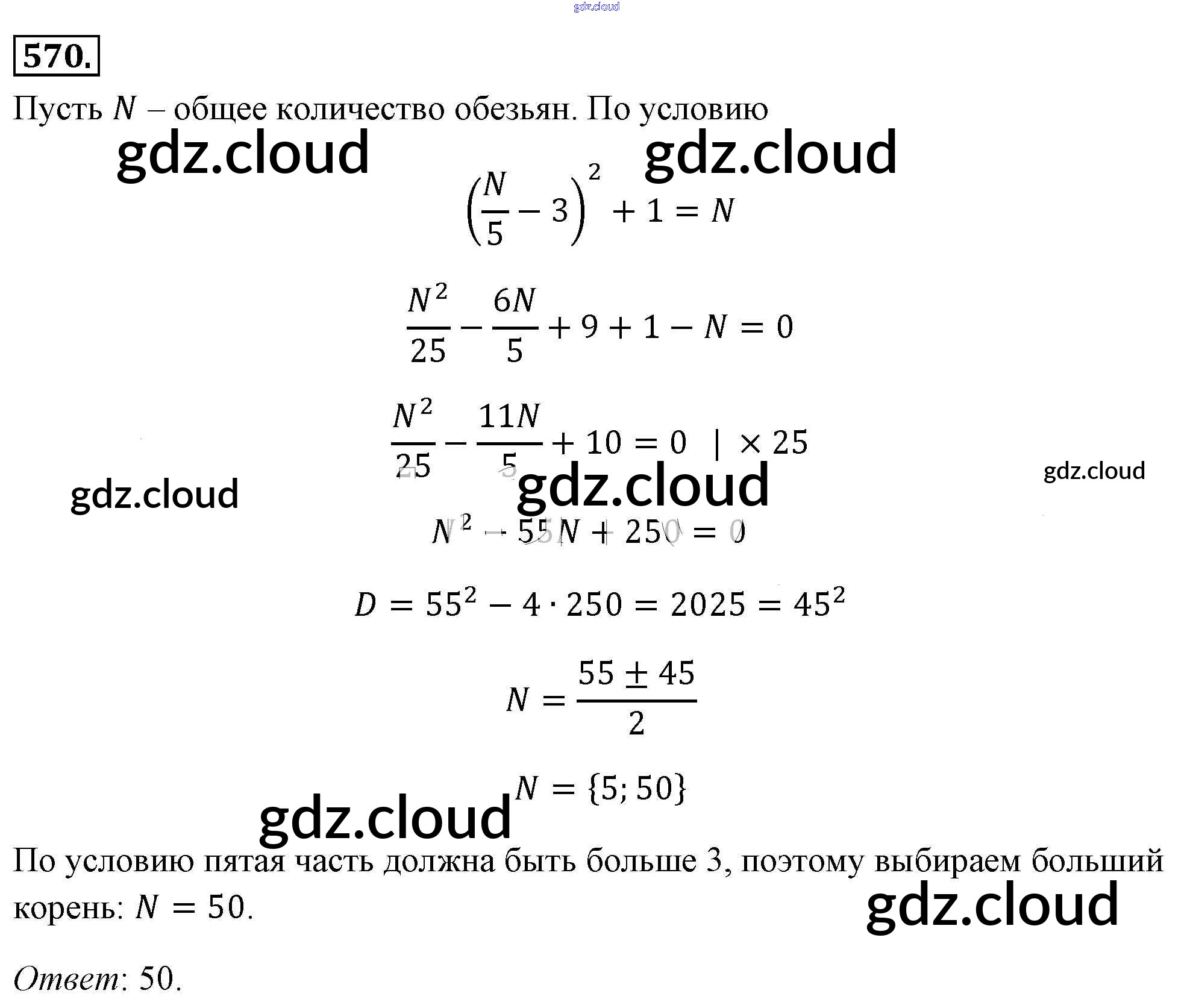 Ответ на задание 570 Учебник Алгебра за 8 (восьмой) класс Макарычев, Миндюк, Нешков, Суворова 2016