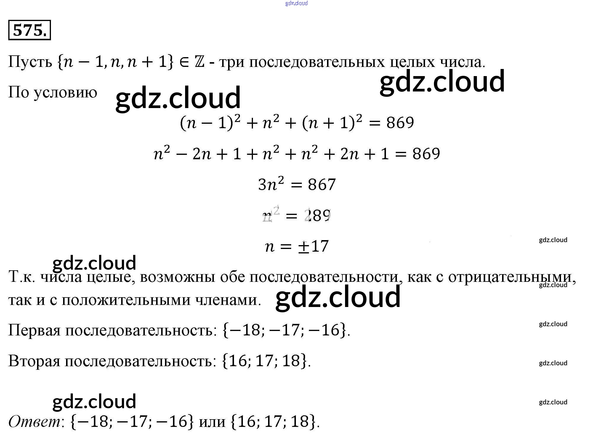 Ответ на задание 575 Учебник Алгебра за 8 (восьмой) класс Макарычев, Миндюк, Нешков, Суворова 2016