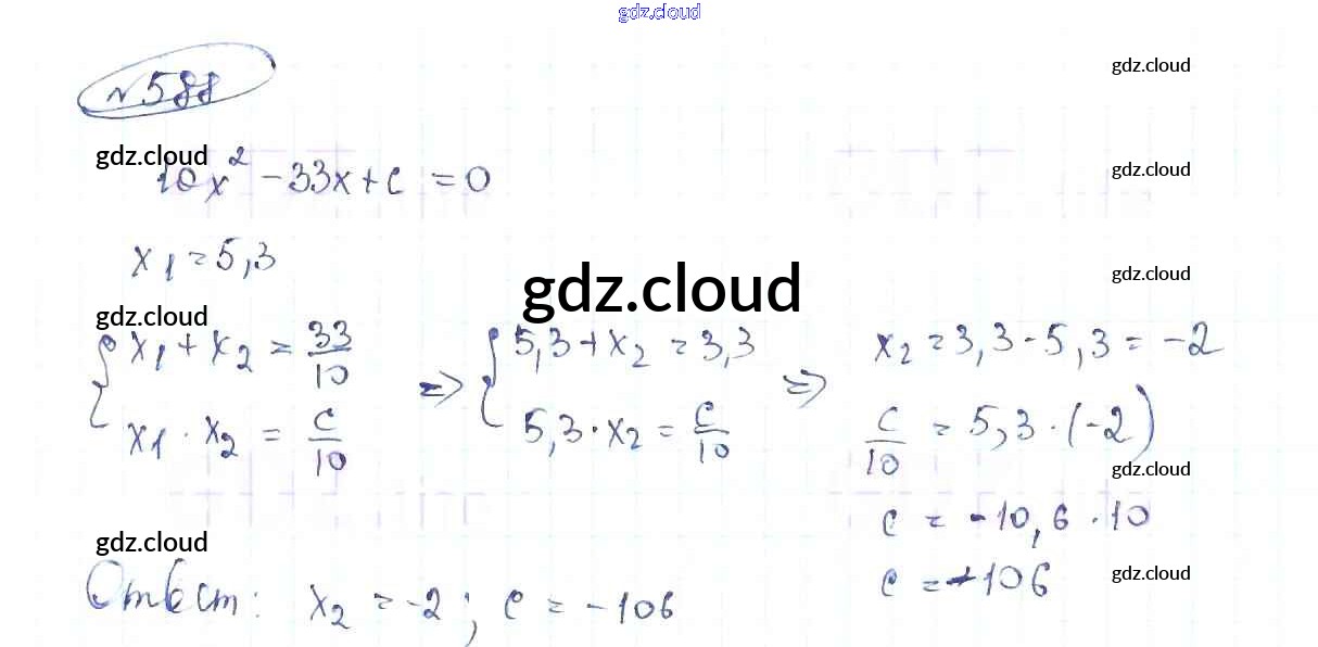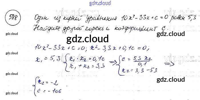 Ответ на задание 588 Учебник Алгебра за 8 (восьмой) класс Макарычев, Миндюк, Нешков, Суворова 2016