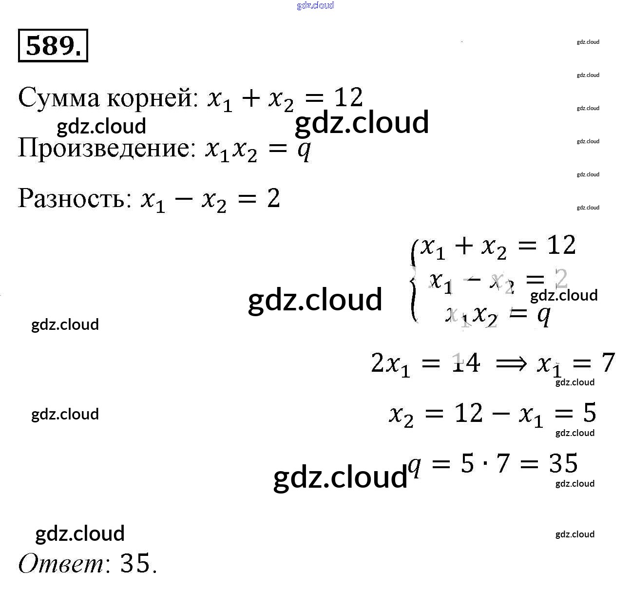 Ответ на задание 589 Учебник Алгебра за 8 (восьмой) класс Макарычев, Миндюк, Нешков, Суворова 2016