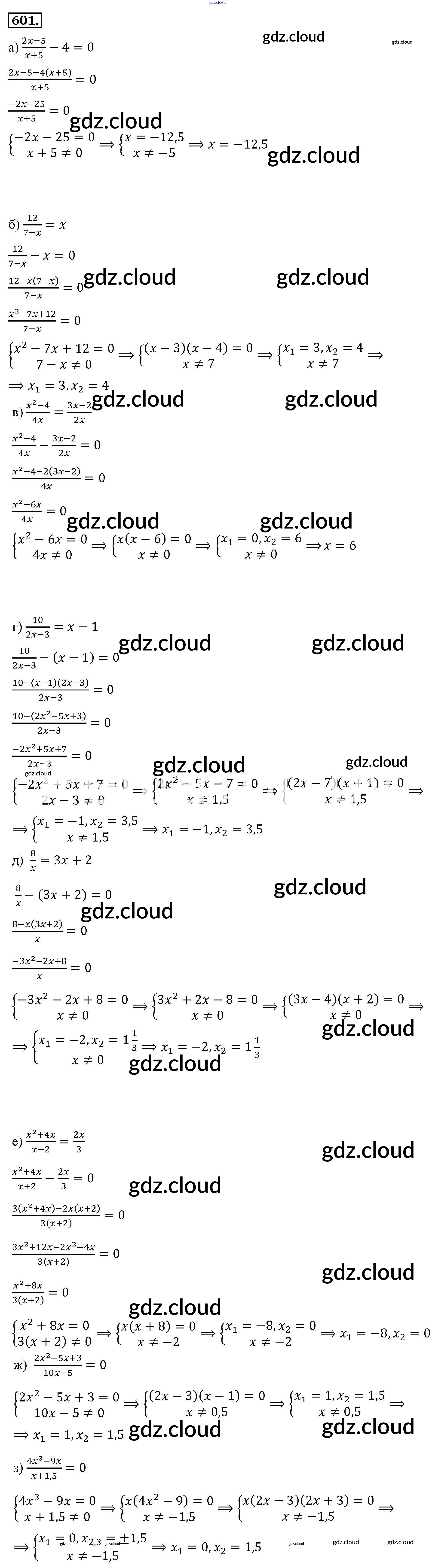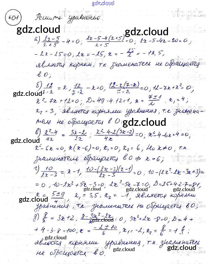 Ответ на задание 601 Учебник Алгебра за 8 (восьмой) класс Макарычев, Миндюк, Нешков, Суворова 2016
