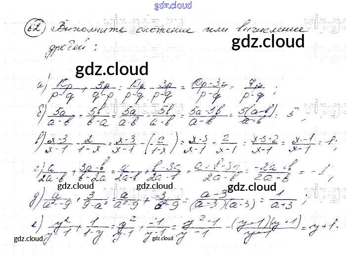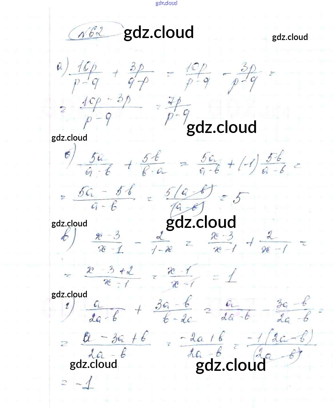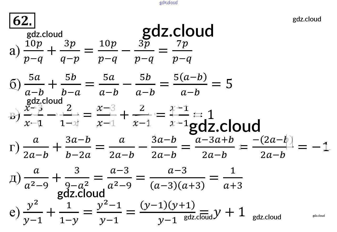 Ответ на задание 62 Учебник Алгебра за 8 (восьмой) класс Макарычев, Миндюк, Нешков, Суворова 2016