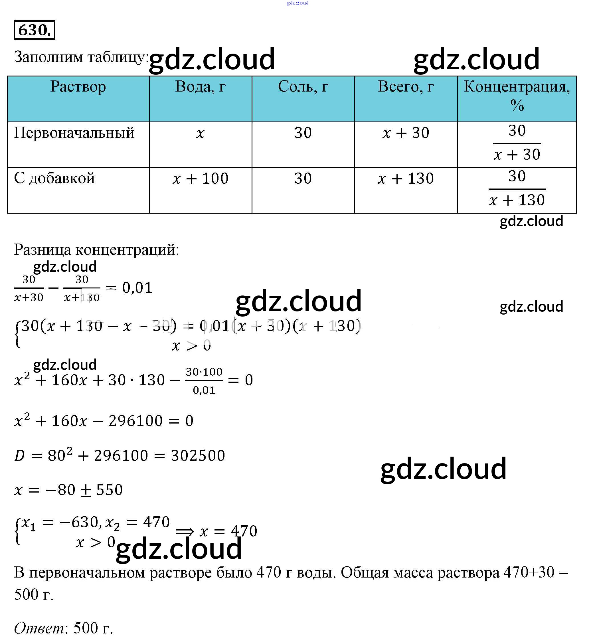 Ответ на задание 630 Учебник Алгебра за 8 (восьмой) класс Макарычев, Миндюк, Нешков, Суворова 2016