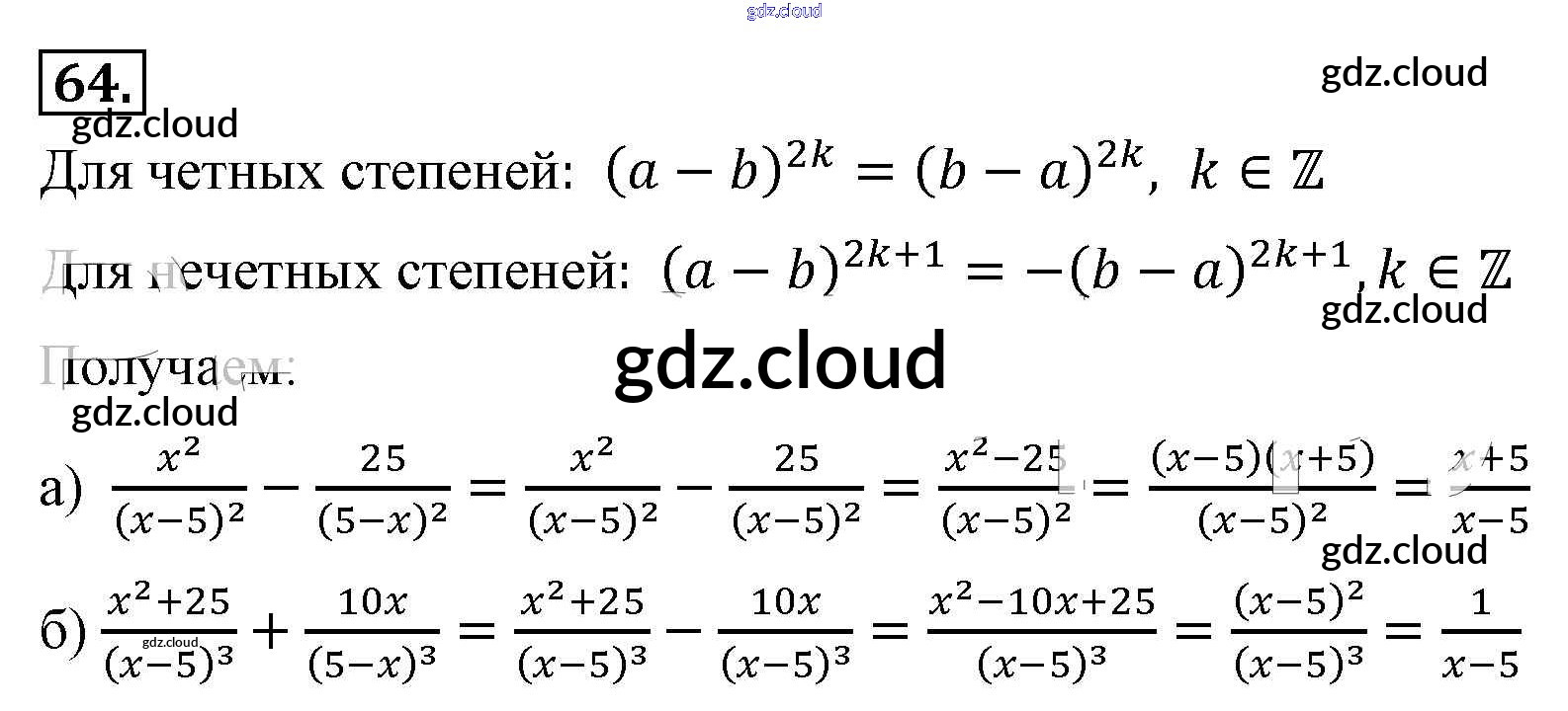 Ответ на задание 64 Учебник Алгебра за 8 (восьмой) класс Макарычев, Миндюк, Нешков, Суворова 2016