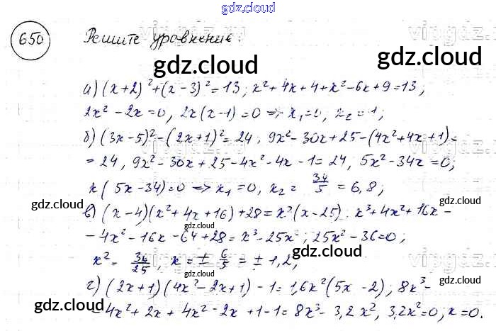 Ответ на задание 650 Учебник Алгебра за 8 (восьмой) класс Макарычев, Миндюк, Нешков, Суворова 2016