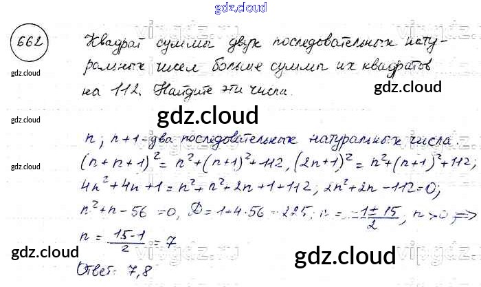 Ответ на задание 662 Учебник Алгебра за 8 (восьмой) класс Макарычев, Миндюк, Нешков, Суворова 2016