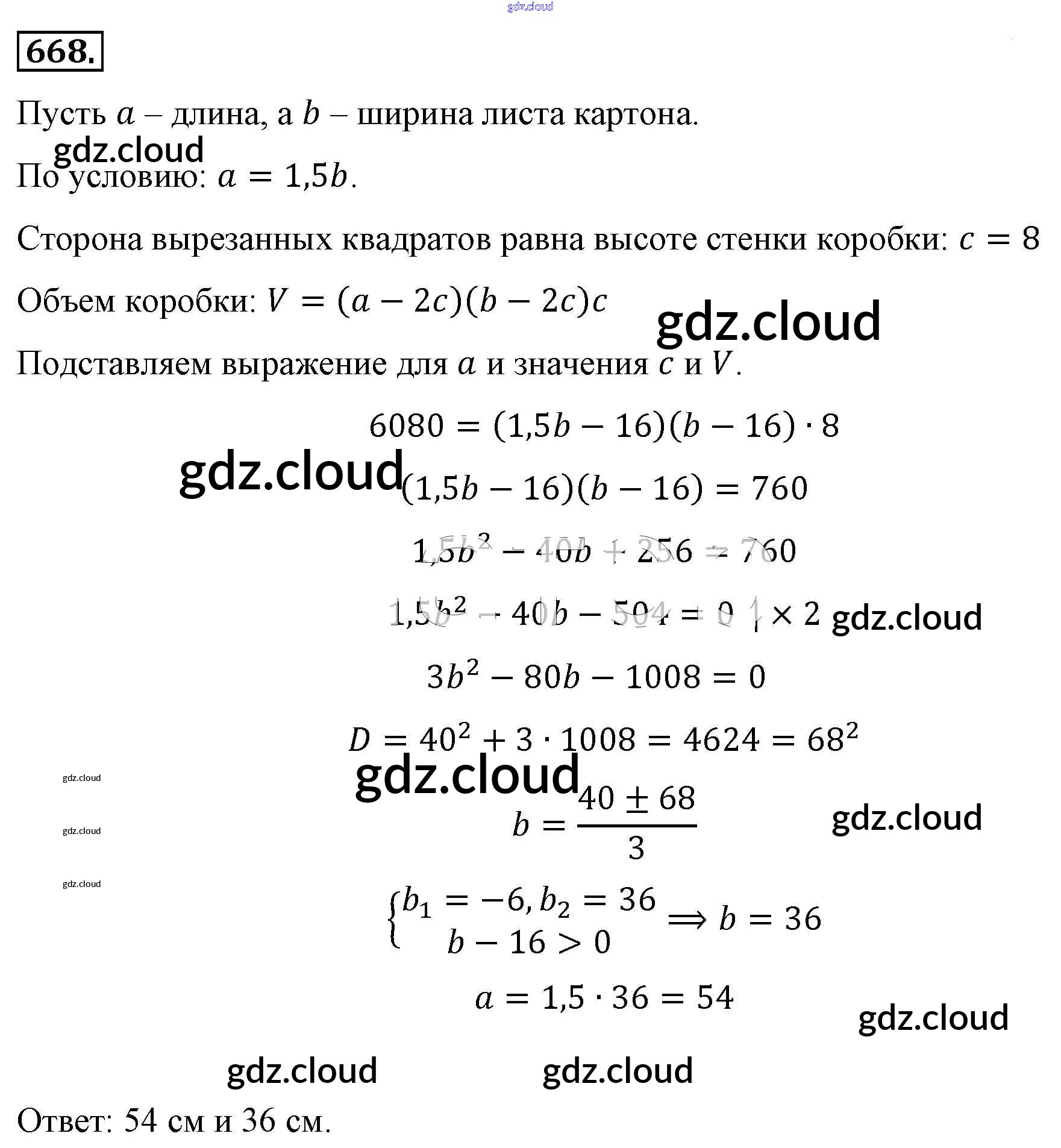 Ответ на задание 668 Учебник Алгебра за 8 (восьмой) класс Макарычев, Миндюк, Нешков, Суворова 2016