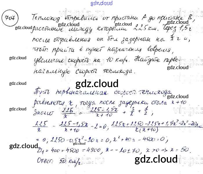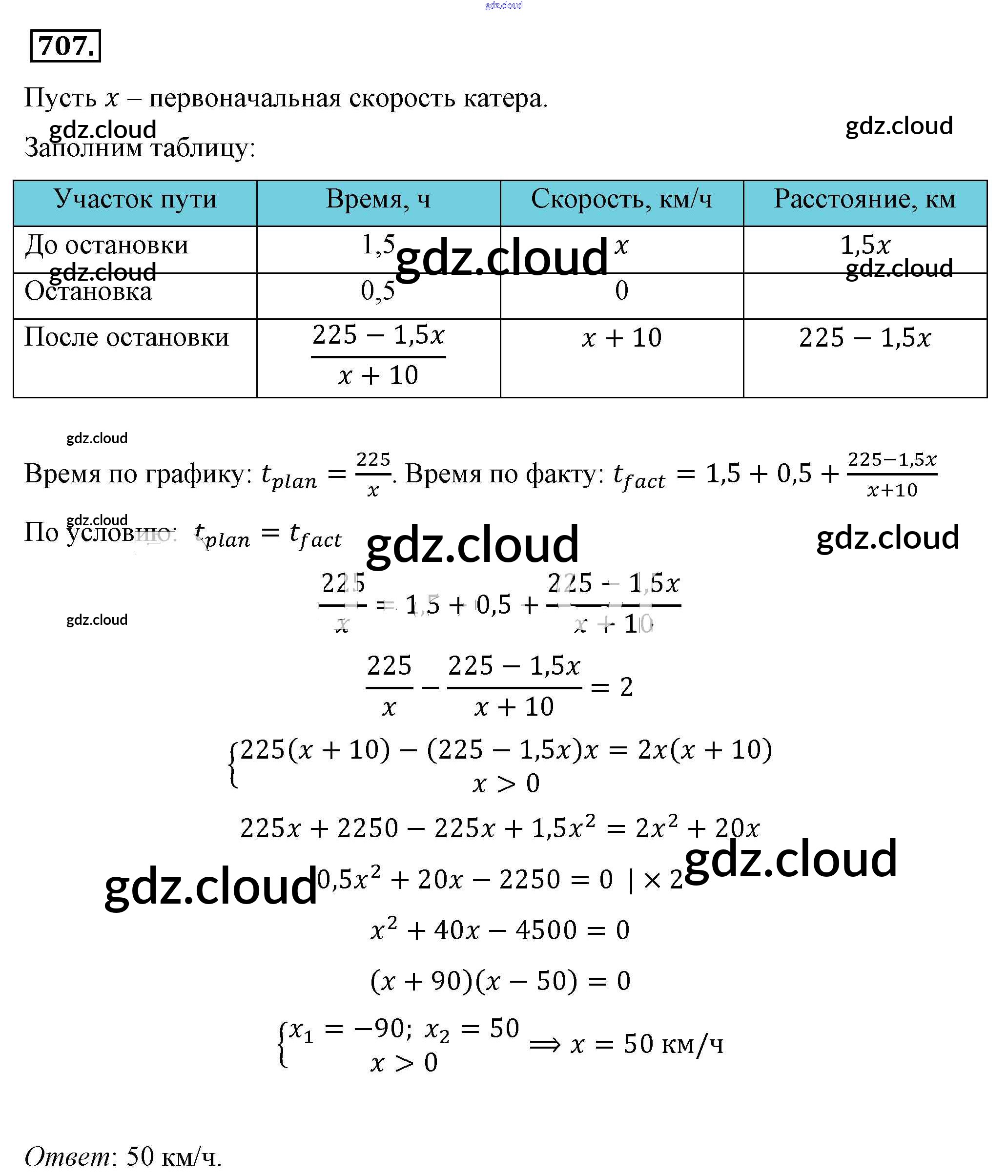 Ответ на задание 707 Учебник Алгебра за 8 (восьмой) класс Макарычев, Миндюк, Нешков, Суворова 2016