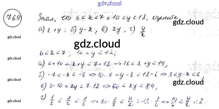 Ответ на задание 769 Учебник Алгебра за 8 (восьмой) класс Макарычев, Миндюк, Нешков, Суворова 2016