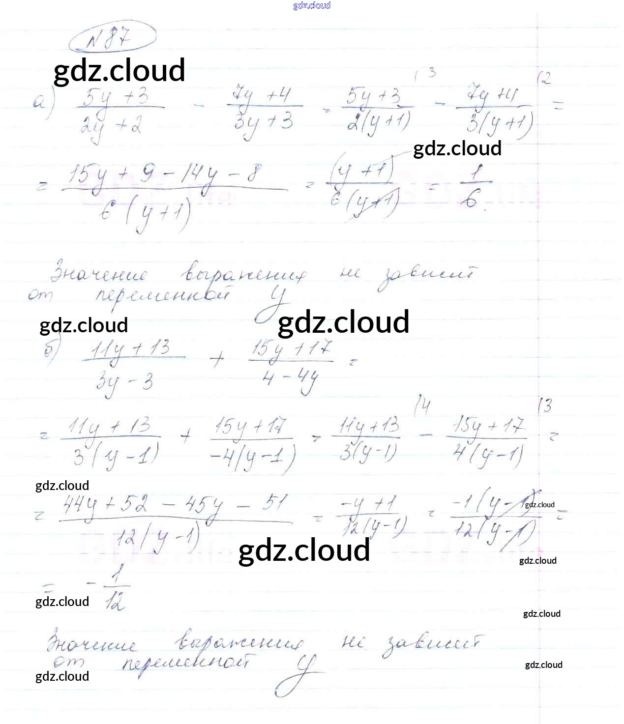 Ответ на задание 87 Учебник Алгебра за 8 (восьмой) класс Макарычев, Миндюк, Нешков, Суворова 2016