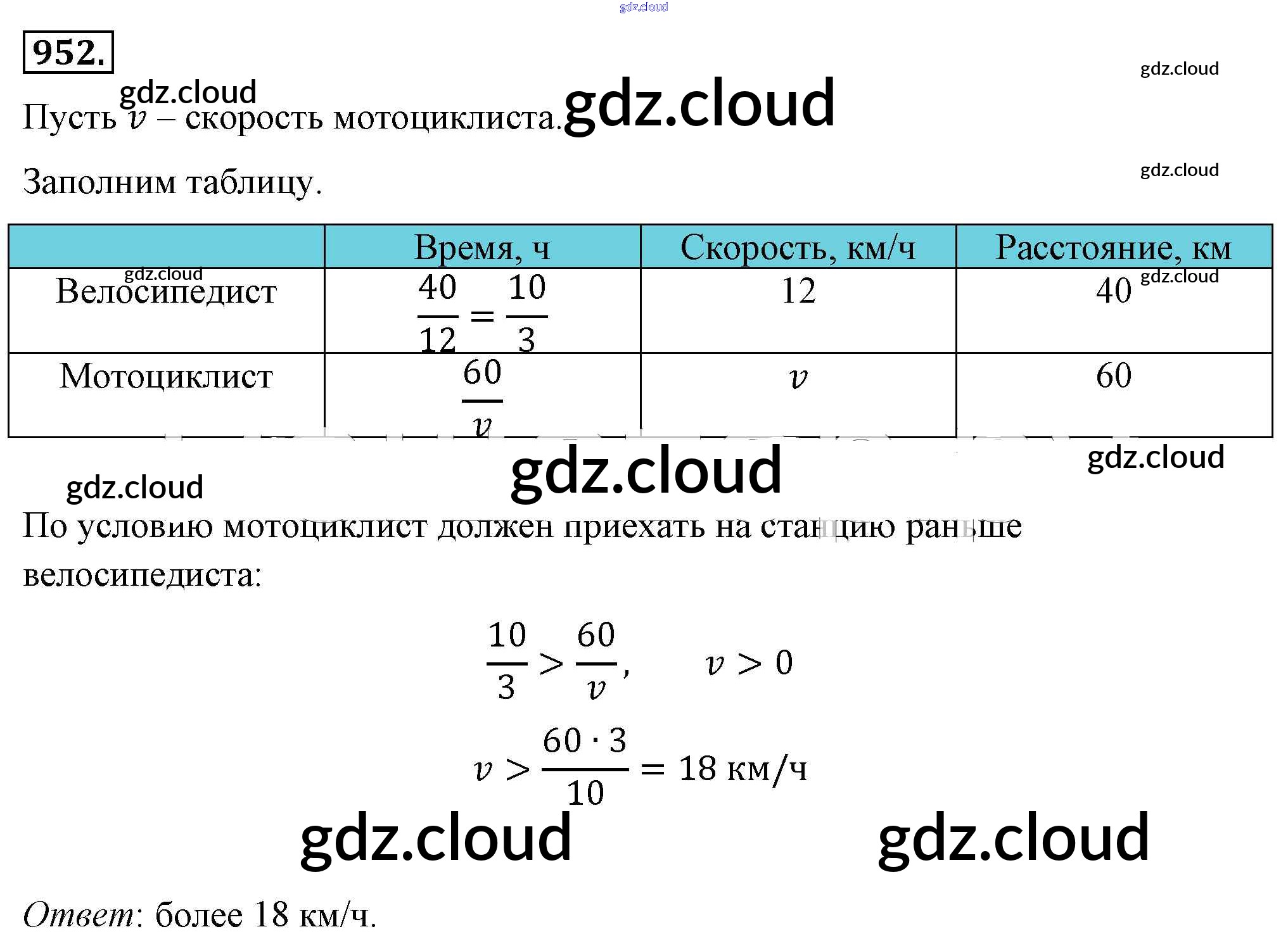 Ответ на задание 952 Учебник Алгебра за 8 (восьмой) класс Макарычев, Миндюк, Нешков, Суворова 2016