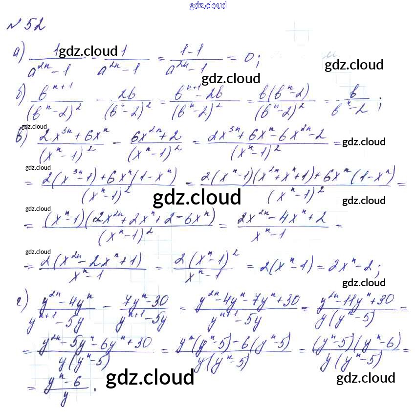 Ответ на задание 52 Учебник Алгебра за 8 (восьмой) класс Макарычев, Миндюк, Нешков, Феоктистов Углубленный уровень 2014 ФГОС онлайн и без номера телефона.
