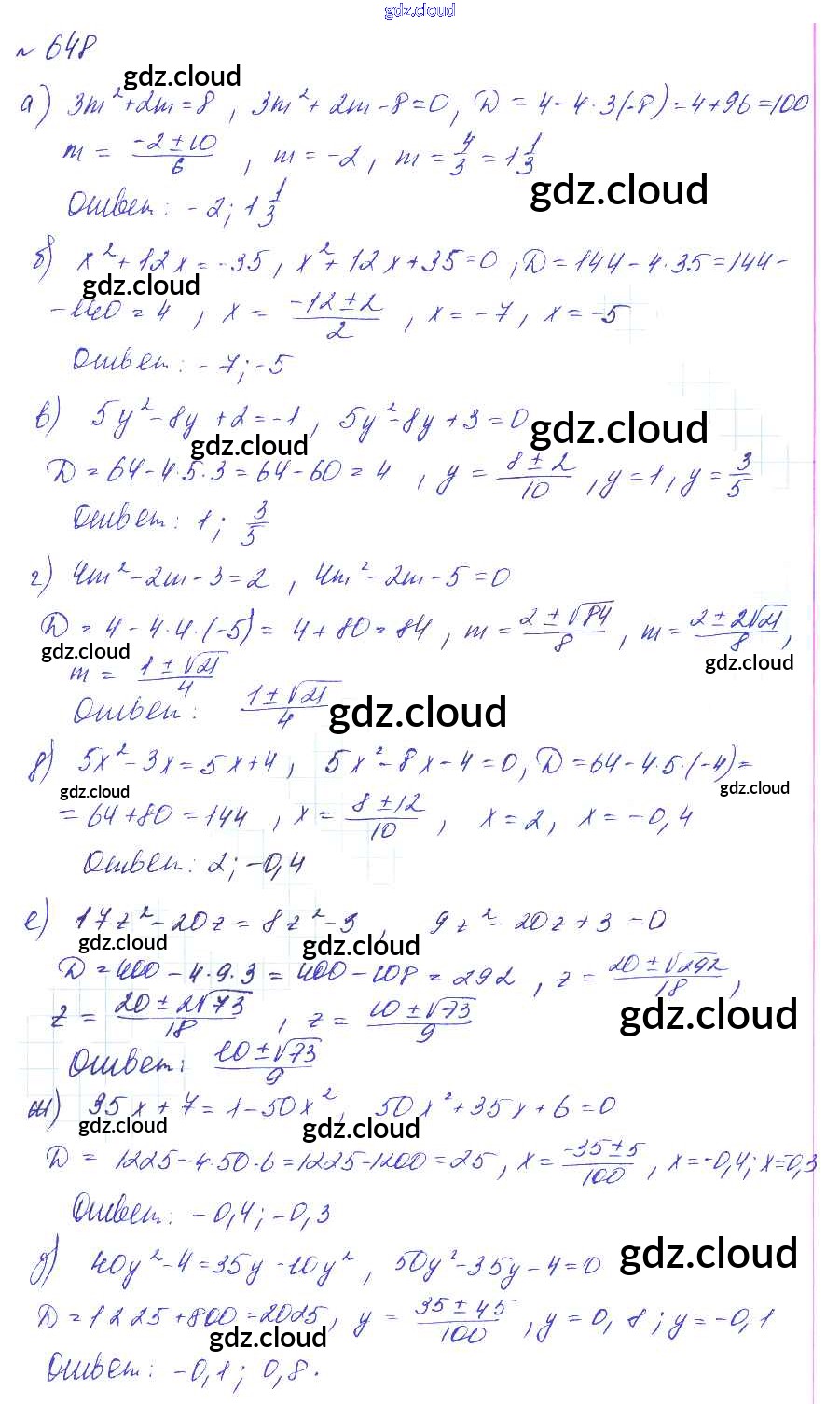 Ответ на задание 648 Учебник Алгебра за 8 (восьмой) класс Макарычев, Миндюк, Нешков, Феоктистов Углубленный уровень 2014