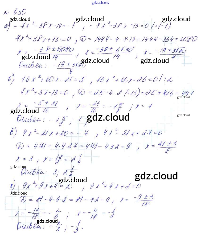 Ответ на задание 650 Учебник Алгебра за 8 (восьмой) класс Макарычев, Миндюк, Нешков, Феоктистов Углубленный уровень 2014