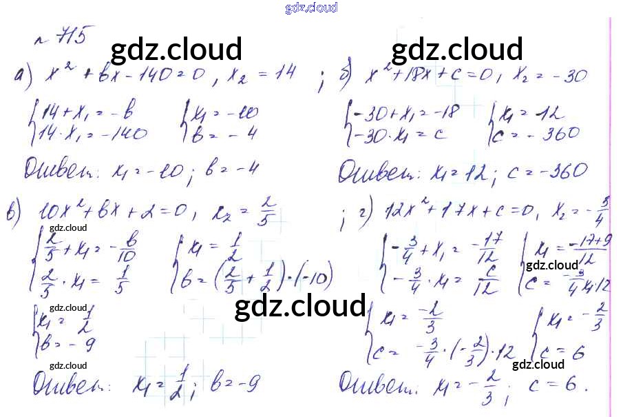 Ответ на задание 715 Учебник Алгебра за 8 (восьмой) класс Макарычев, Миндюк, Нешков, Феоктистов Углубленный уровень 2014