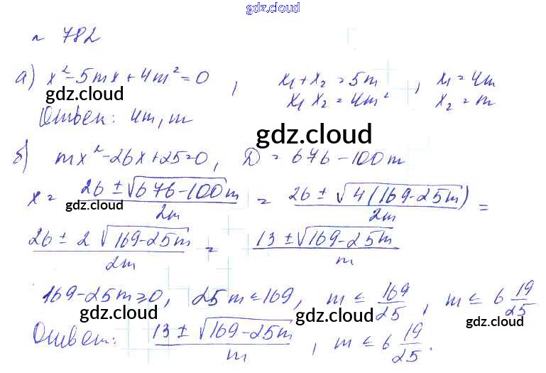 Ответ на задание 782 Учебник Алгебра за 8 (восьмой) класс Макарычев, Миндюк, Нешков, Феоктистов Углубленный уровень 2014