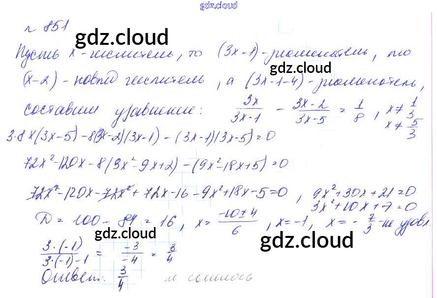 Ответ на задание 851 Учебник Алгебра за 8 (восьмой) класс Макарычев, Миндюк, Нешков, Феоктистов Углубленный уровень 2014