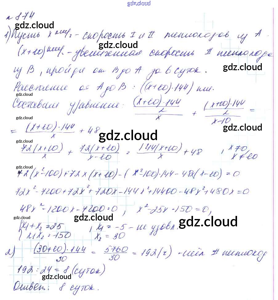 Ответ на задание 874 Учебник Алгебра за 8 (восьмой) класс Макарычев, Миндюк, Нешков, Феоктистов Углубленный уровень 2014